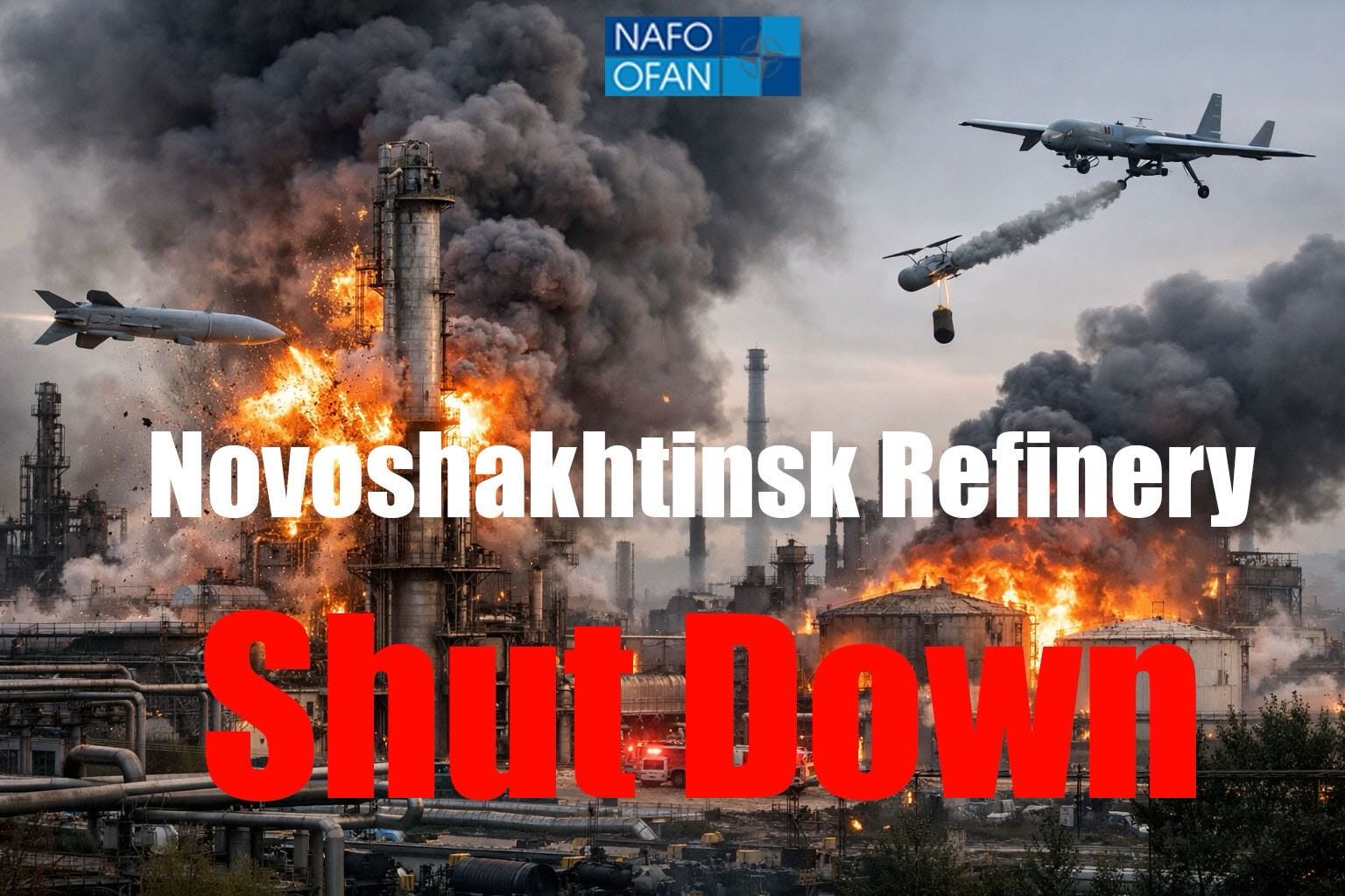 Dec 25, 2025 — Novoshakhtinsk Oil Refinery struck by UK-supplied Storm Shadow cruise missiles, causing significant explosions and damage, contributing to shutdown.